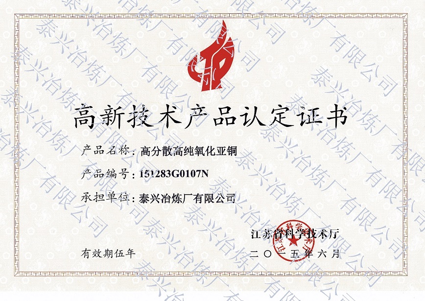 氧化亞銅生產(chǎn)歷史悠久,技術和規(guī)模在全 國均處于領先地位